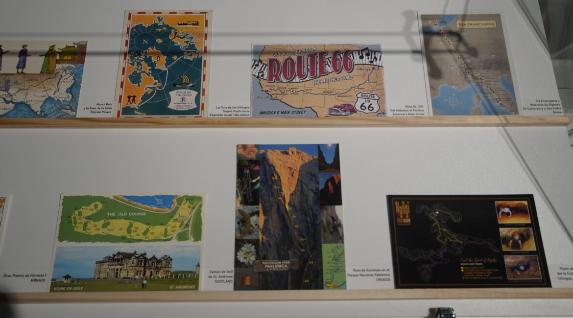 La exposición transita todos los confines de la Tierra: Países, Regiones, Islas… De hecho, los visitantes podrán encontrar varios ejemplares enviados desde las Islas Canarias, con mapas y fotografías de diferentes enclaves del Archipiélago. Destacar además los callejeros o planos urbanos, que servían como herramienta de orientación a locales y viajeros.